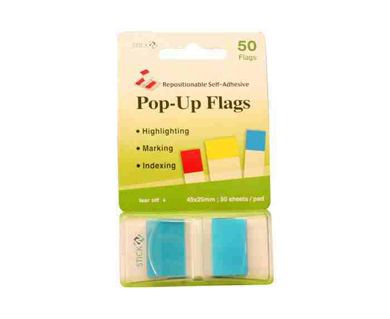Film index autoadeziv 45 x 25 mm, 50 file/set, Stick"n Pop-up (cu dispenser) - transparent/albastru