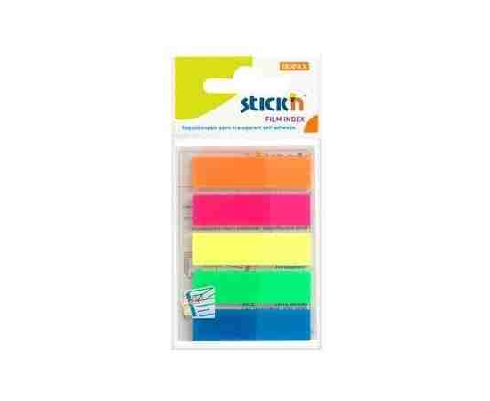 Stick index plastic transparent color 45 x 12 mm, 5 x 25 file/set, Stick"n - 5 culori neon
