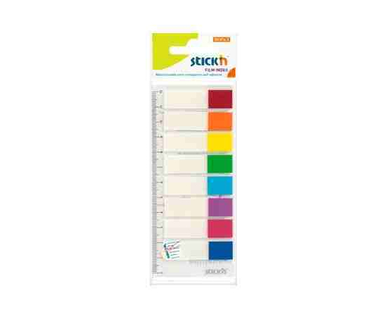 Stick index plastic transparent color 45 x 12 mm, 8 x 15 file/set, Stick"n - 8 culori transparente/neon