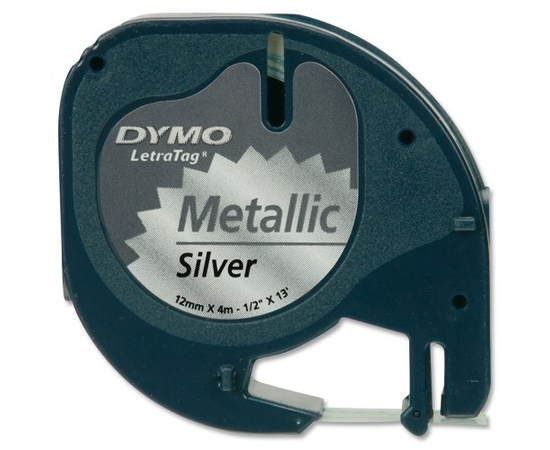 Banda DYMO LetraTag metalica, argintie, 12 mm x 4 m