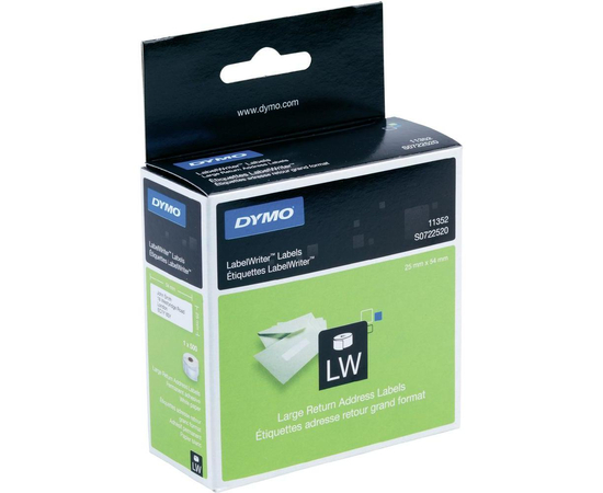 - Etichetele DYMO LabelWriter de 25 mm x 54 mm sunt etichete pentru adresa expeditorului, din hartie alba cu adeziv permanent.