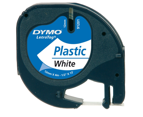 Banda DYMO LetraTag plastic, alba, 12 mm x 4 m