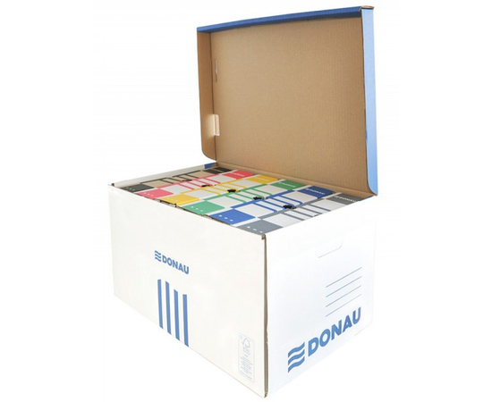 Container de arhivare cu capac deschidere superioara, carton 490gsm, DONAU - albastru/alb