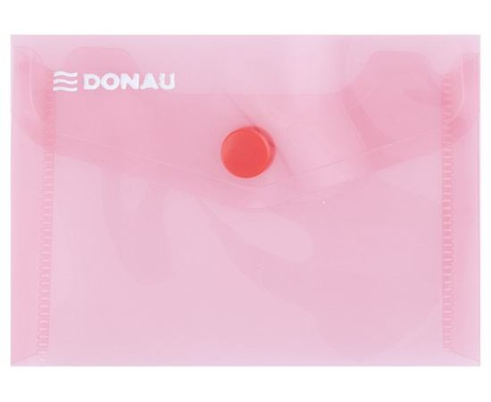 Mapa PP protectie documente A7 landscape, inchidere cu capsa, 10/set, DONAU - rosu transparent