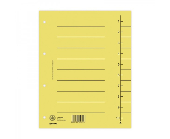 Separatoare carton manila 250g/mp, 300 x 240mm, 100/set, DONAU - galben