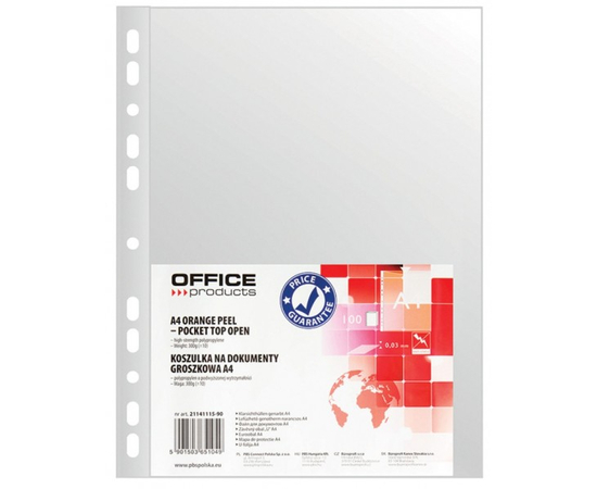Folie protectie pentru documente A4, 30 microni, 100folii/set, Office Products - transparenta
