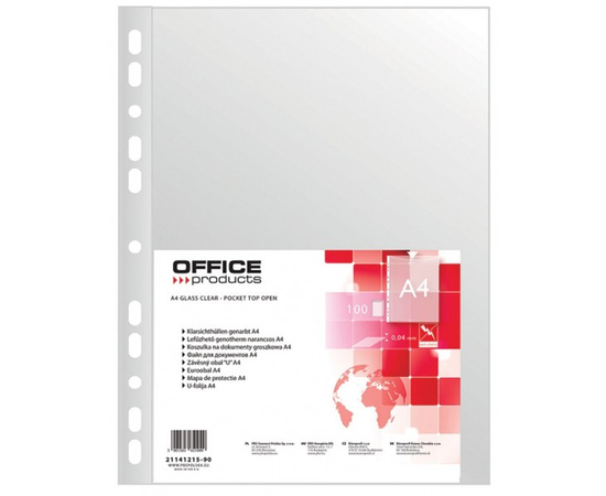 Folie protectie pentru documente A4, 40 microni, 100folii/set, Office Products - transparenta