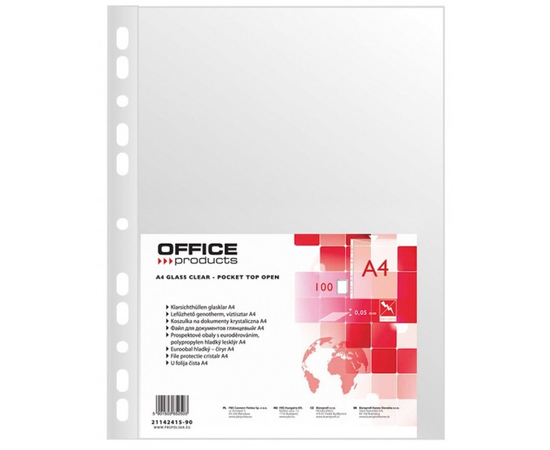 Folie protectie pentru documente A4, 50 microni, 100folii/set, Office Products - cristal