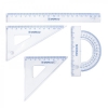 Set geometrie mic, contine: rigla 20cm, raportor, echer 10.5cm si echer 15cm, DONAU - transparent