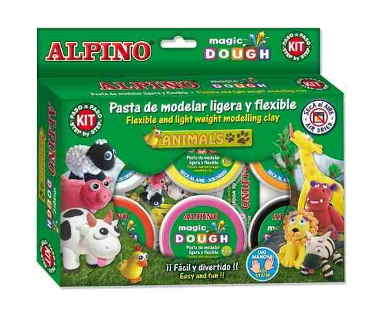 Kit 6 culori x 40gr plastelina magica + 4 seturi accesorii, ALPINO Animals