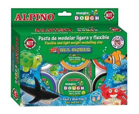 Kit 6 culori x 40gr plastelina magica + 4 seturi accesorii, ALPINO Sea World