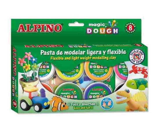 Kit 8 culori x 14gr plastelina magica + 4 seturi accesorii, ALPINO