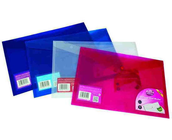 Mapa protectie documente, folio landscape, cu 2 buzunare si capsa, 5/set, PUKKA - transparent roz