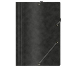 Fabricata din carton presat cretat, de 390 gsm Cu 3 clape in interior Inchidere cu 2 benzi elastice pe colt, in culoarea mapei, care protejeaza continutul in timpul transportului. Format: A4 Dimensiune: 233 x 318 mm Culoare: negru