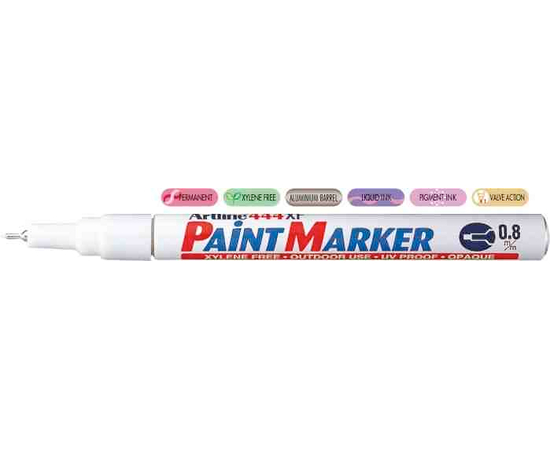 Marker cu vopsea varf rotund 0.8mm, corp metalic, ARTLINE 444XF - alb