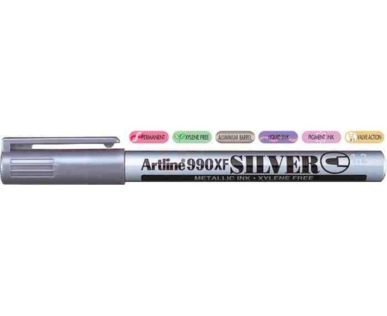 Marker cu vopsea varf rotund 1.2mm, corp metalic, ARTLINE 990XF - argintiu