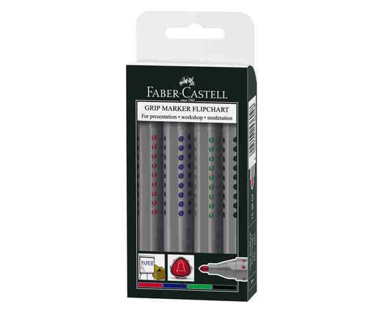 Marker Flipchart Grip set 4 culori Faber-Castell 4 culori, varf rotund