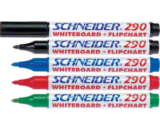 Marker pentru tabla de scris+flipchart,2-3mm, 4 cul./set, SCHNEIDER Maxx 290 - (N, R, A, V)