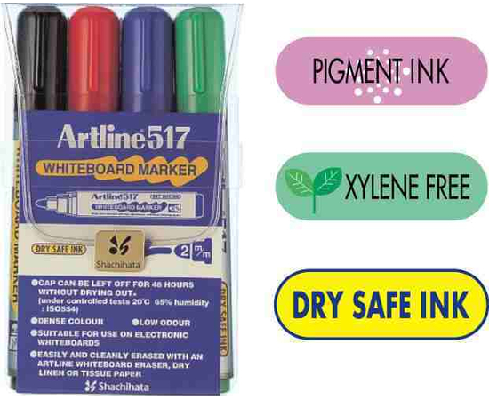 Marker pentru tabla de scris, varf rotund, 2.0mm, 6cul/set, ARTLINE 517 -(BK,RE,BL,GR,BR,OG)
