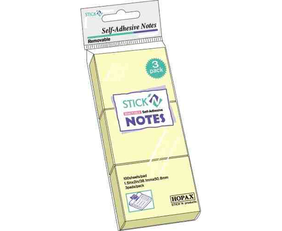 Notes autoadeziv 38 x 51 mm, 3 x 100 file/set, Stick"n - galben pastel
