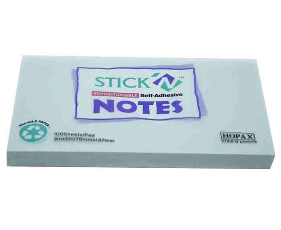Notes autoadeziv 76 x 127 mm, 100 file, Stick"n - albastru pastel - hartie reciclata