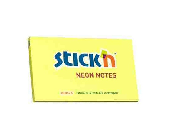 Notes autoadeziv 76 x 127 mm, 100 file, Stick"n - galben neon
