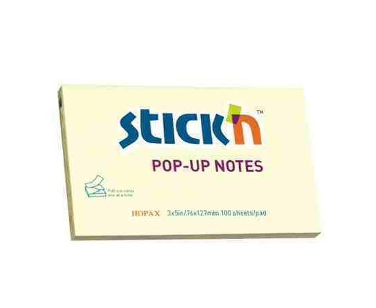 Notes autoadeziv 76 x 127 mm, 100 file, Stick"n Pop-up - galben pastel