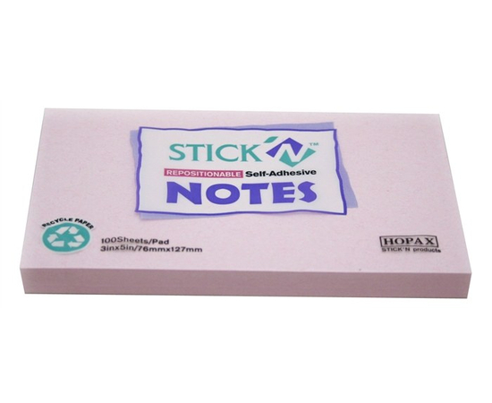 Notes autoadeziv 76 x 127 mm, 100 file, Stick"n - roz pastel - hartie reciclata
