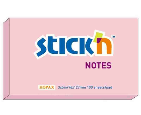 Notes autoadeziv 76 x 127 mm, 100 file, Stick"n - roz pastel