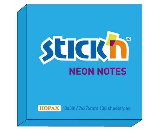 Notes autoadeziv 76 x 76 mm, 100 file, Stick"n - albastru neon
