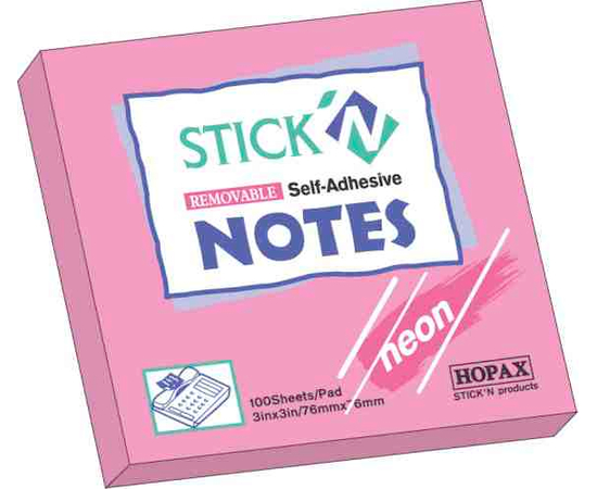 Notes autoadeziv 76 x 76 mm, 100 file, Stick"n - corai neon