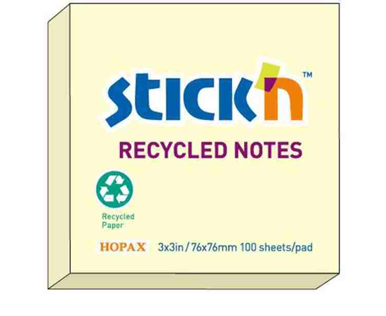 Notes autoadeziv 76 x 76 mm, 100 file, Stick"n - galben pastel - hartie reciclata