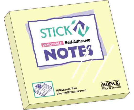 Notes autoadeziv 76 x 76 mm, 100 file, Stick"n - galben pastel