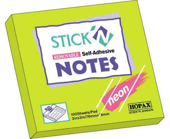 Notes autoadeziv 76 x 76 mm, 100 file, Stick"n - verde neon