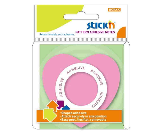 Notes autoadeziv 76 x 76 mm, 50 file, Stick"n - inima - roz neon