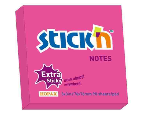 Notes autoadeziv extra-sticky 76 x 76mm, 90 file, Stick"n - magenta neon
