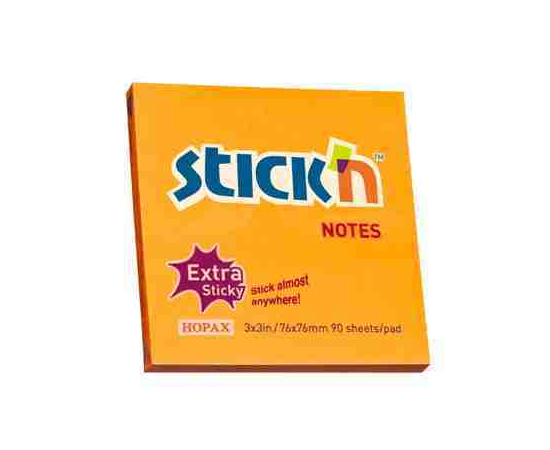 Notes autoadeziv extra-sticky 76 x 76mm, 90 file, Stick"n - portocaliu neon