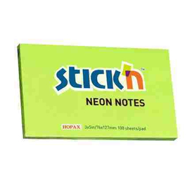 Notes autoadeziv 76 x 51 mm, 100 file, Stick"n - verde neon