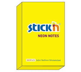 Notes autoadeziv 76 x 51 mm, 100 file, Stick"n - galben pastel