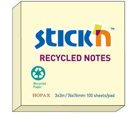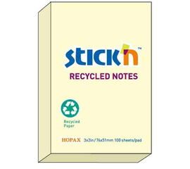 Notes autoadeziv 76 x 51 mm, 100 file, Stick"n - galben pastel - hartie reciclata