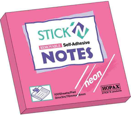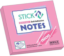Notes autoadeziv 76 x 76 mm, 100 file, Stick"n - roz pastel