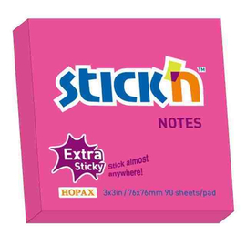 Notes autoadeziv extra-sticky 76 x 76mm, 90 file, Stick"n - magenta neon