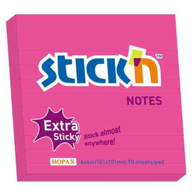 Notes autoadeziv extra-sticky liniate 101 x 101mm, 90 file, Stick"n - magenta neon