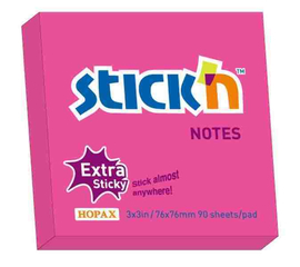 Notes autoadeziv extra-sticky 76 x 76mm, 90 file, Stick"n - magenta neon