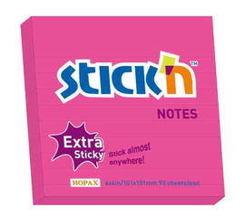 Notes autoadeziv extra-sticky liniate 101 x 101mm, 90 file, Stick"n - magenta neon
