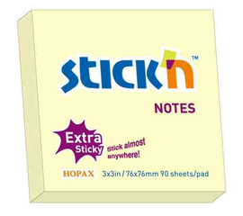 Notes autoadeziv extra-sticky 76 x 76mm, 90 file, Stick"n - galben pastel