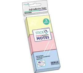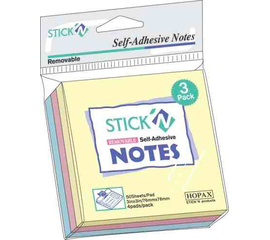 Notes autoadeziv 38 x 51 mm, 3 x 100 file/set, Stick"n - 3 culori pastel