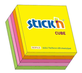Cub notes autoadeziv 50 x 50 mm, 250 file, Stick"n - 5 culori fluorescente
