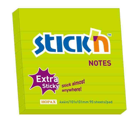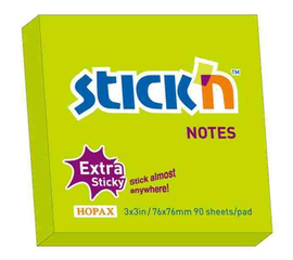 Notes autoadeziv extra-sticky 76 x 76mm, 90 file, Stick"n - verde neon