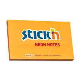 Notes autoadeziv 76 x 127 mm, 100 file, Stick"n - portocaliu neon